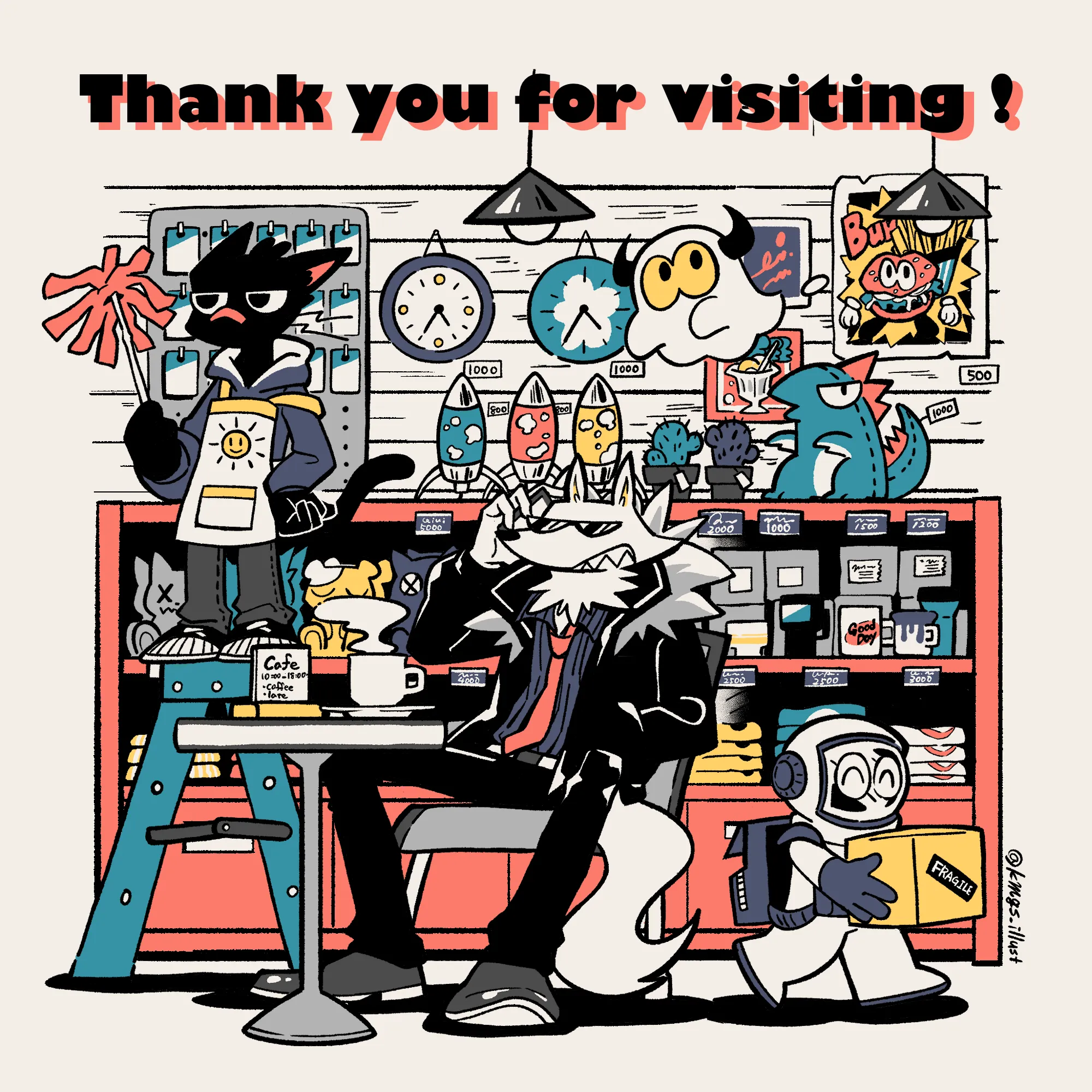 CREATED BY... イラストレーター こむぎ 人外×SF×レトロをテーマにキャラクターデザインやグッズ制作をしています。 イラスト・グッズ制作・キャラクターデザイン等のご依頼承ります。 CONTACT komugi_shock@yahoo.co.jp